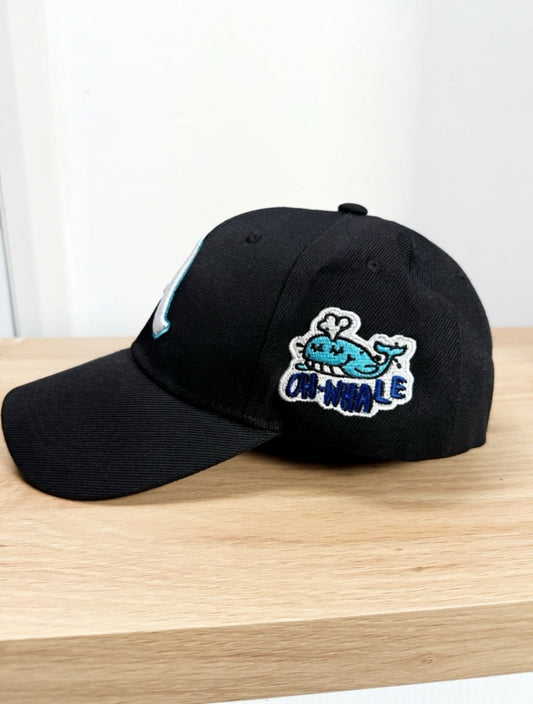Caapsol Gothic Letter Embroidery Whale Side Baseball Cap